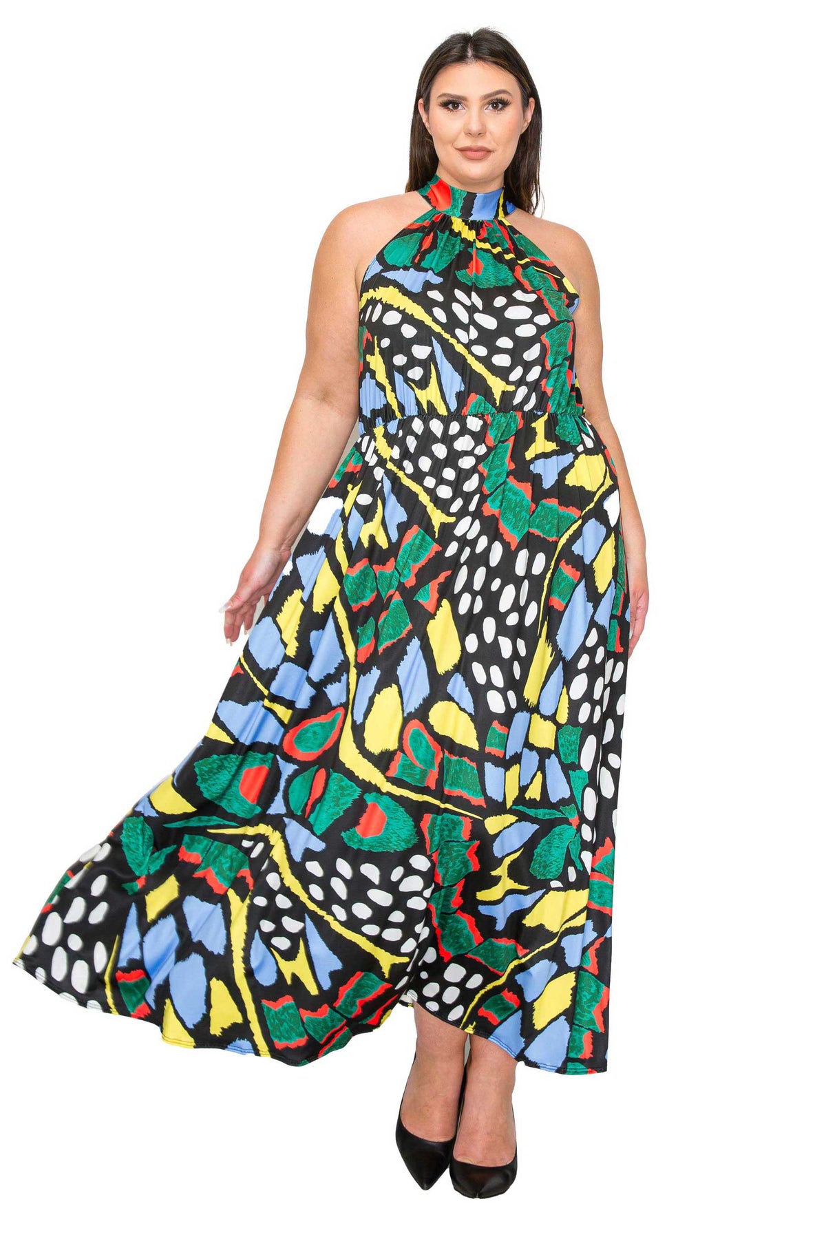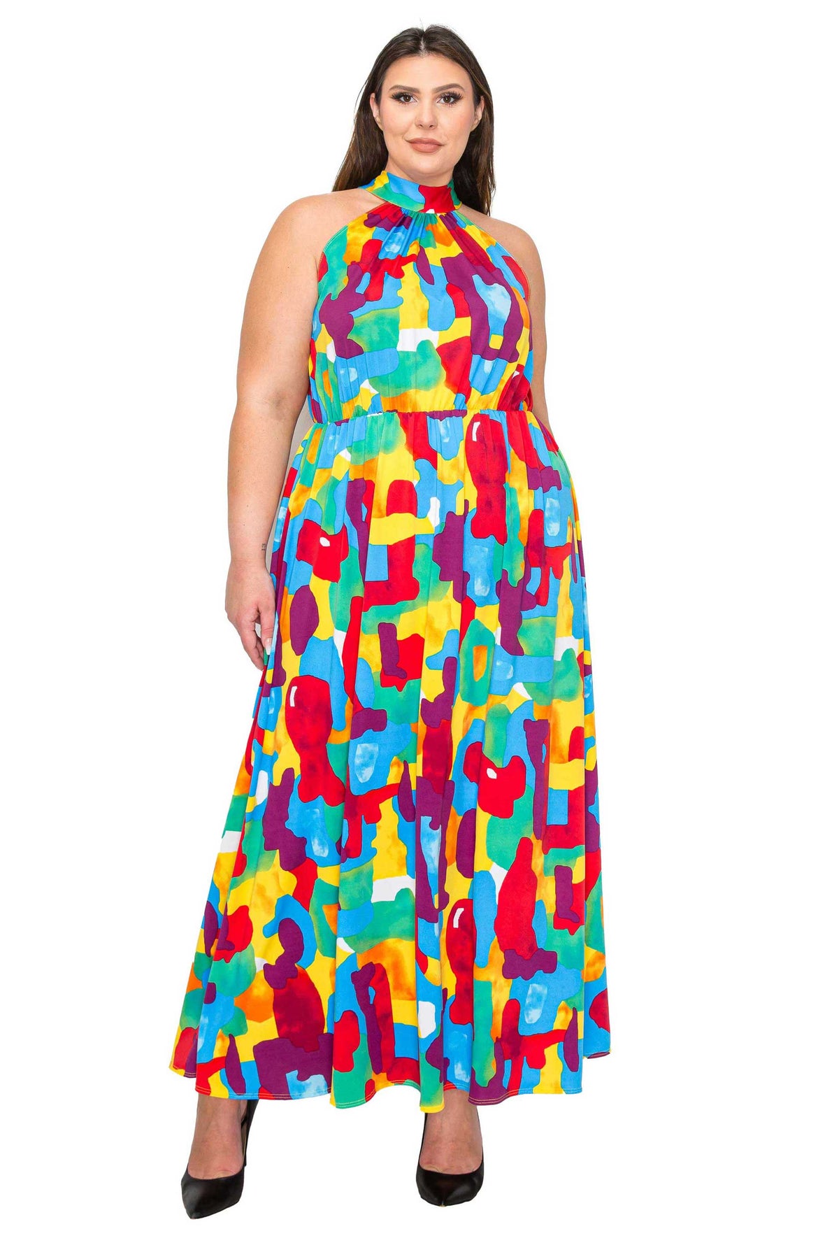 Arroyo Halter Neck Maxi Dress in Abstract Print