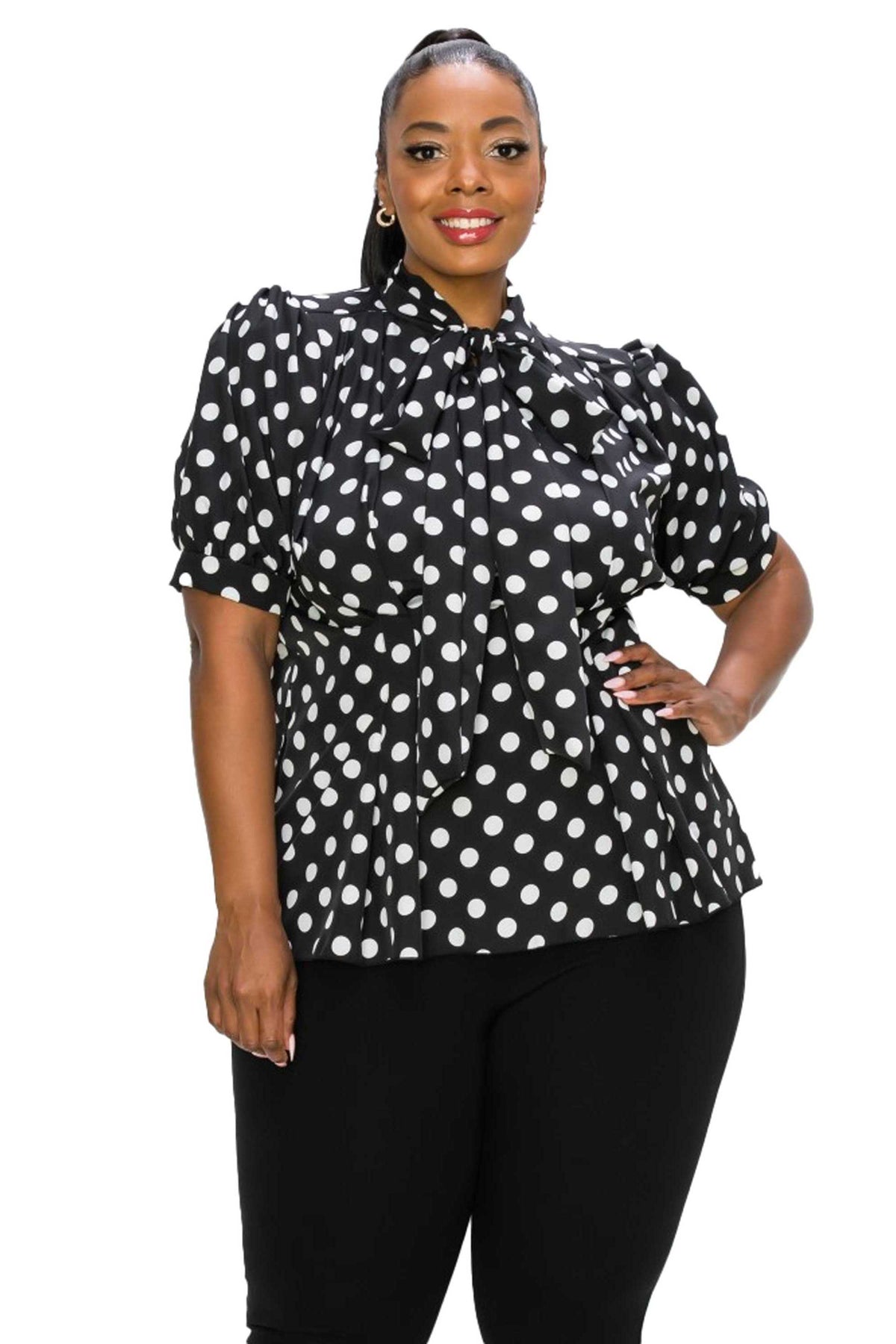 Minnie Polka Dot Tie Neck Blouse